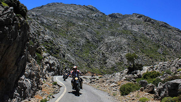 Einfahrtour zum Kennenlernen der Motorräder und Straßen (Idagebirge-Lashitti). Abendessen und Übernachtung im Motocamp.
