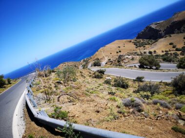 Auf eigene Faust absolvierten wir stumpf in Richtung Süden und zurück 200 km reinstes Fahrvergnügen. Es gab kaum Verkehr, zahlreiche bergauf- und ab Kurven und der Straßenbelag war dank der fast neuen Reifen auch stets kein Problem. Auch am zweiten Tag zeigte sich die Insel Kreta in Richtung Süd-Westen und bei weiteren 280 km als ein Paradies für Motorradfahrer! Und die Insel duftet! Nach Kräutern, Salzwasser und Gerüchen die wir nicht zuordnen aber genießen konnten. Ein vergleichbares Geruchserlebnis haben wir noch in keinem anderen Land erlebt.
